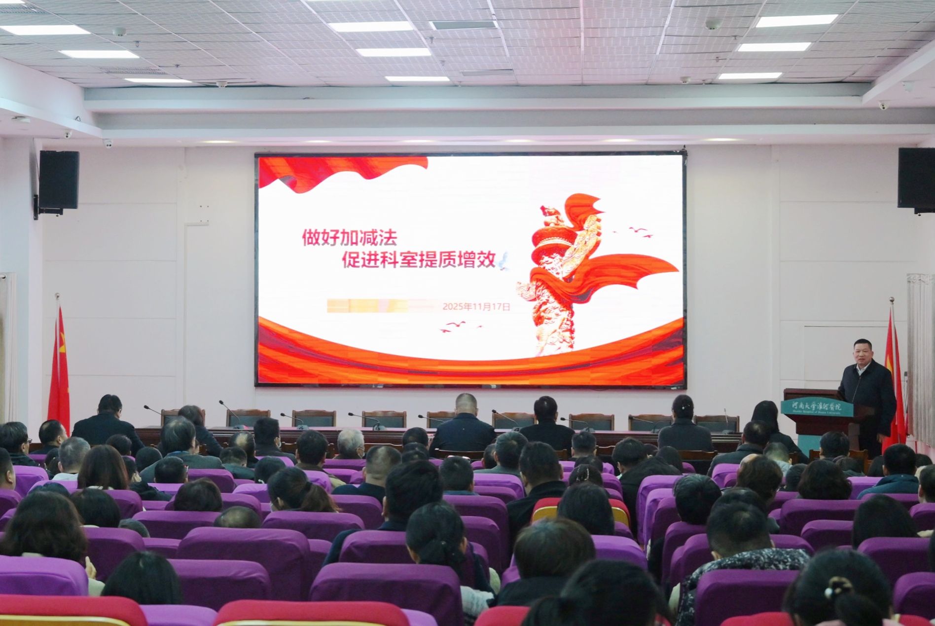 11月17日,淮河医院总会计师王建军以“做好加减法 促进科室提质增效”为主题,为全院中层干部讲授了一堂内容详实、导向鲜明的专题党课。