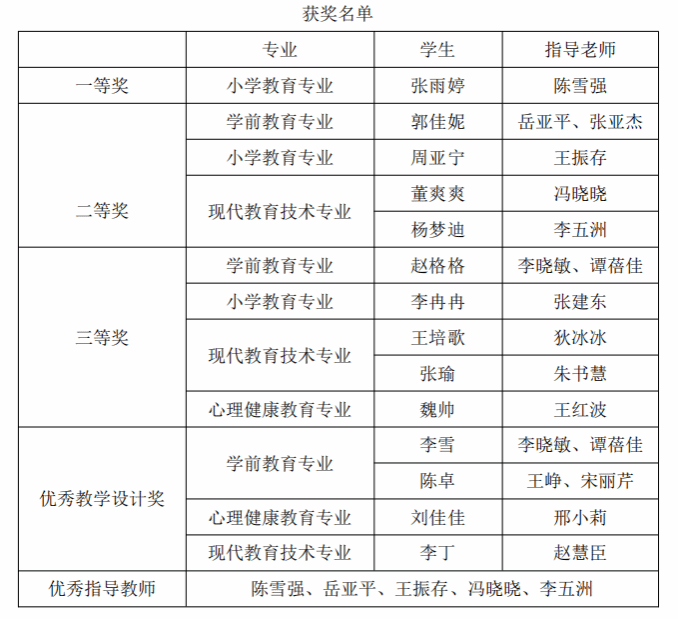 2025年全国“田家炳杯”全日制教育硕士专业学位研究生各学科领域的教学技能大赛决赛陆续落幕。教育学部组织学前教育、小学教育、现代教育技术和心理健康教育四个专业研究生参赛,同学们凭借扎实的专业功底与精彩的教学展示脱颖而出,斩获多项大奖。小学教育专业张雨婷(指导老师:陈雪强)斩获一等奖,学前教育专业郭佳妮(指导老师:岳亚平、张亚杰)、小学教育专业周亚宁(指导老师:王振存)、现代教育技术专业董爽爽(指导老师:冯晓晓)与杨梦迪(指导老师:李五洲)荣获二等奖。另有多位同学拿下三等奖与优秀教学设计奖,陈雪强、岳亚平、王振存、冯晓晓、李五洲等五位指导老师获评“优秀指导教师”称号。