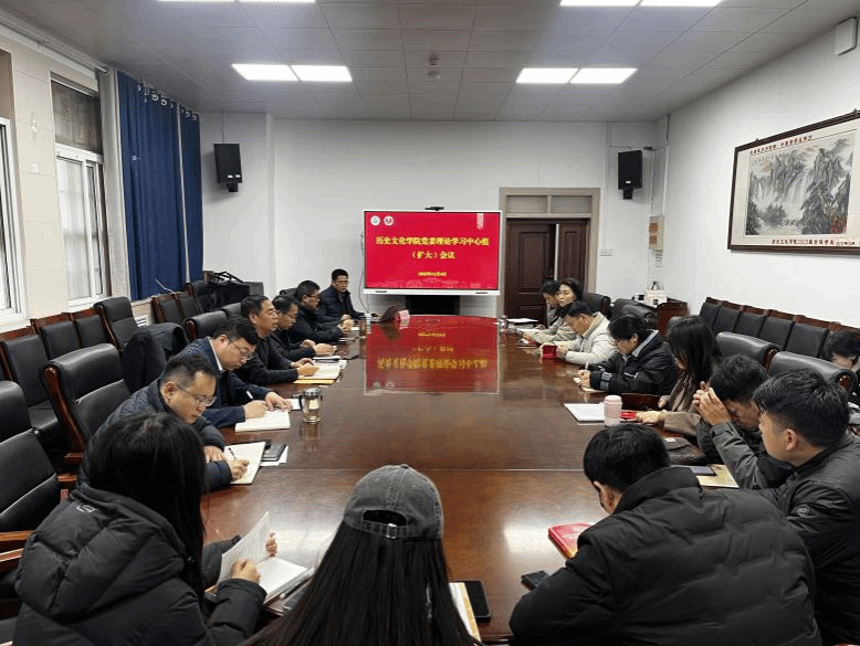 12月4日上午,历史文化学院在三楼会议室召开党委理论学习中心组(扩大)学习会,专题学习党的二十届四中全会精神和《习近平谈治国理政》第五卷核心内容。学院党委委员、各党支部书记、教研室主任及学院科室负责人参加,学院党委书记张占党主持学习会。