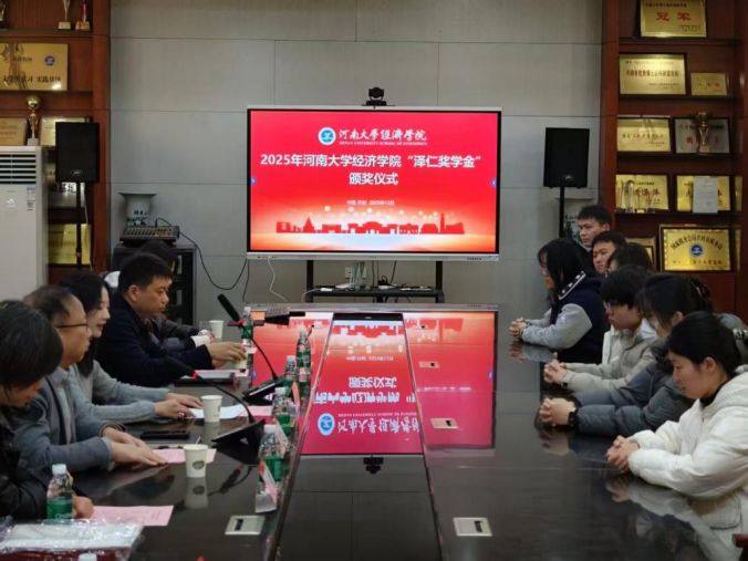 12月15日上午,经济学院2025年度“泽仁奖学金”颁发仪式在学院一楼院史馆举行。奖学金捐助人薛铭泽女士,经济学院党委书记程金辉、党委副书记翟志远,研究生辅导员汤爽、张巍、程博文及研究生代表共同参与本次仪式,仪式由翟志远主持。