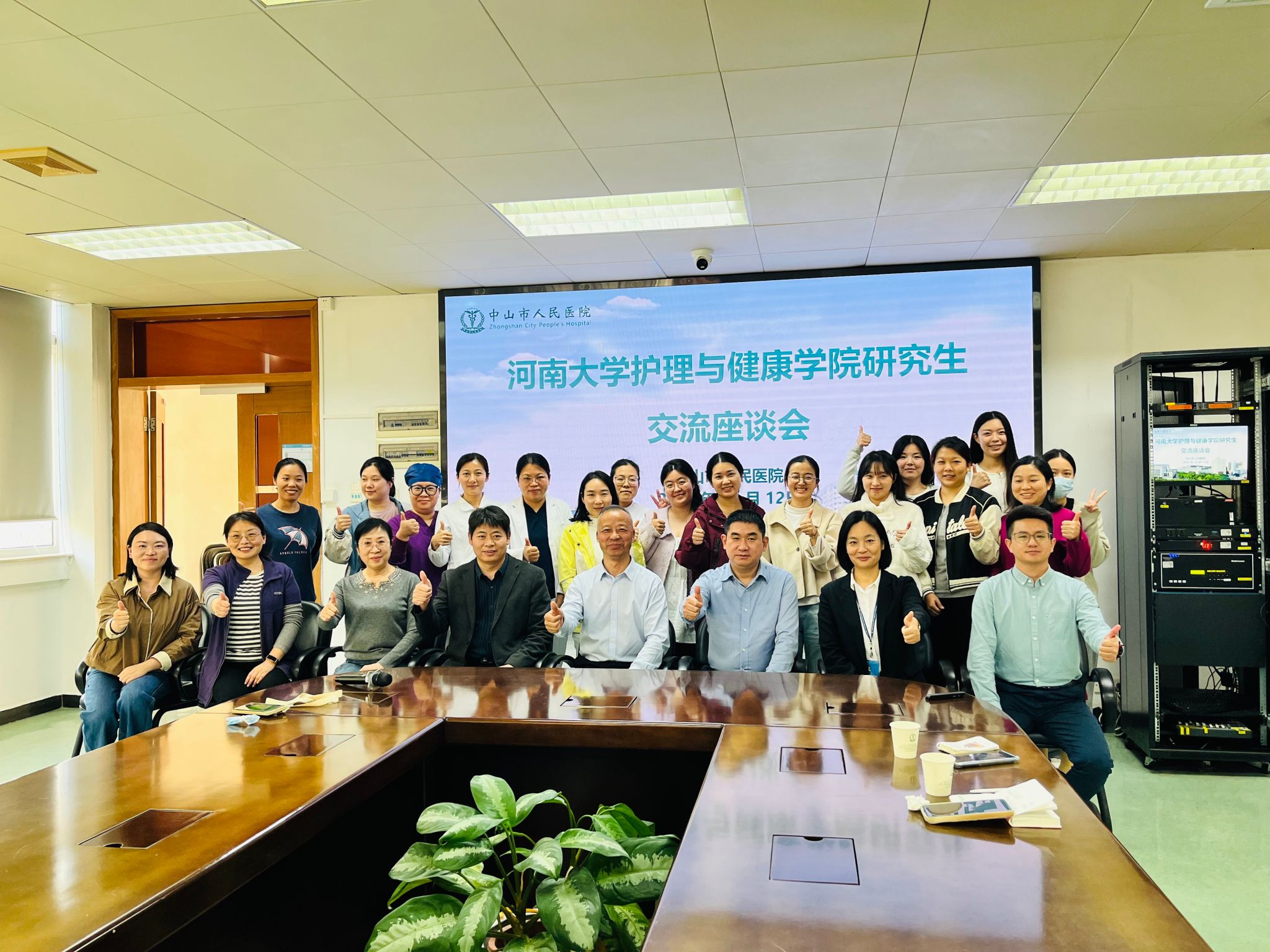 在中山市人民医院,谢纳泽一行与该院副院长雒洪志、护理部主任梁义,以及在该院工作的我校护理学专业毕业生、参加临床实践的在读研究生、2025年护理学专业在职人员课程研修班学员,欢聚一堂,围绕科研成长与学业发展进行交流。座谈中,雒洪志代表医院对谢纳泽一行的到来表示热烈欢迎,深情回顾了多年来院校双方在护理人才培养、临床实践教学方面建立的深厚合作基础与取得的丰硕成果,高度肯定了河南大学输送的护理研究生在临床、科研、管理岗位上展现出的扎实功底与卓越潜力。谢纳泽对中山市人民医院为学生提供的优质实践平台、精心临床带教及全方位成长支持表示衷心感谢。已毕业研究生依次结合职业发展路径,分享校院角色转换经验,就持续保持科研热情、平衡临床与学术深造提出思考。在读研究生、研修班学员分别就关心的问题,与学院老师们进行交流。梁义在总结发言中表示,本次座谈交流为院校协同育人提供了精准的改进方向,期待更多兼具扎实临床胜任力与突出科研潜能的河南大学毕业生来医院发展。