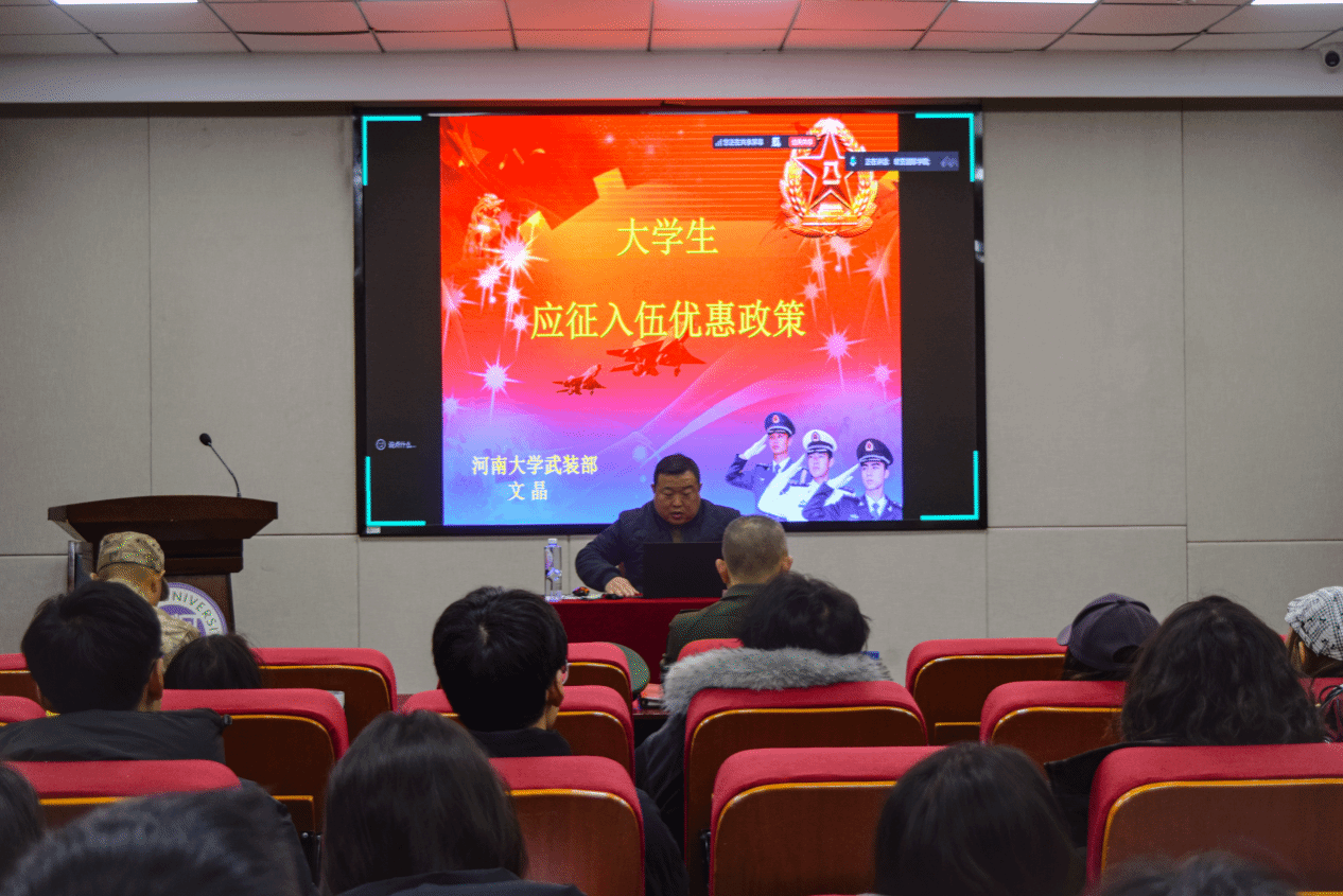 文晶结合河南大学征兵工作整体安排,系统介绍了学校大学生入伍相关政策,重点解读了入伍流程、学业保障、退役复学及升学支持等内容,并通过介绍河南大学优秀入伍学生代表的成长案例,帮助同学们更加直观地理解参军入伍与个人发展的衔接路径。