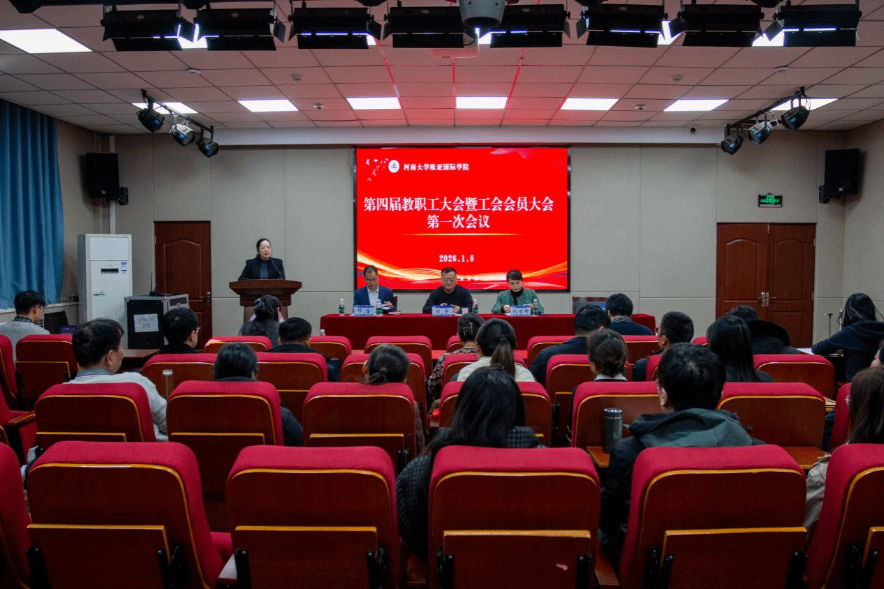 1月8日下午,欧亚国际学院在院二楼报告厅召开第四届教职工大会暨工会会员大会第一次会议。校工会副主席刘宇,欧亚国际学院党委书记刘佳明、院长邓浩、正处级组织员王志乾、党委副书记贺颖、副院长苏芳芳出席会议,学院全体教职工参加会议。会议由贺颖主持。