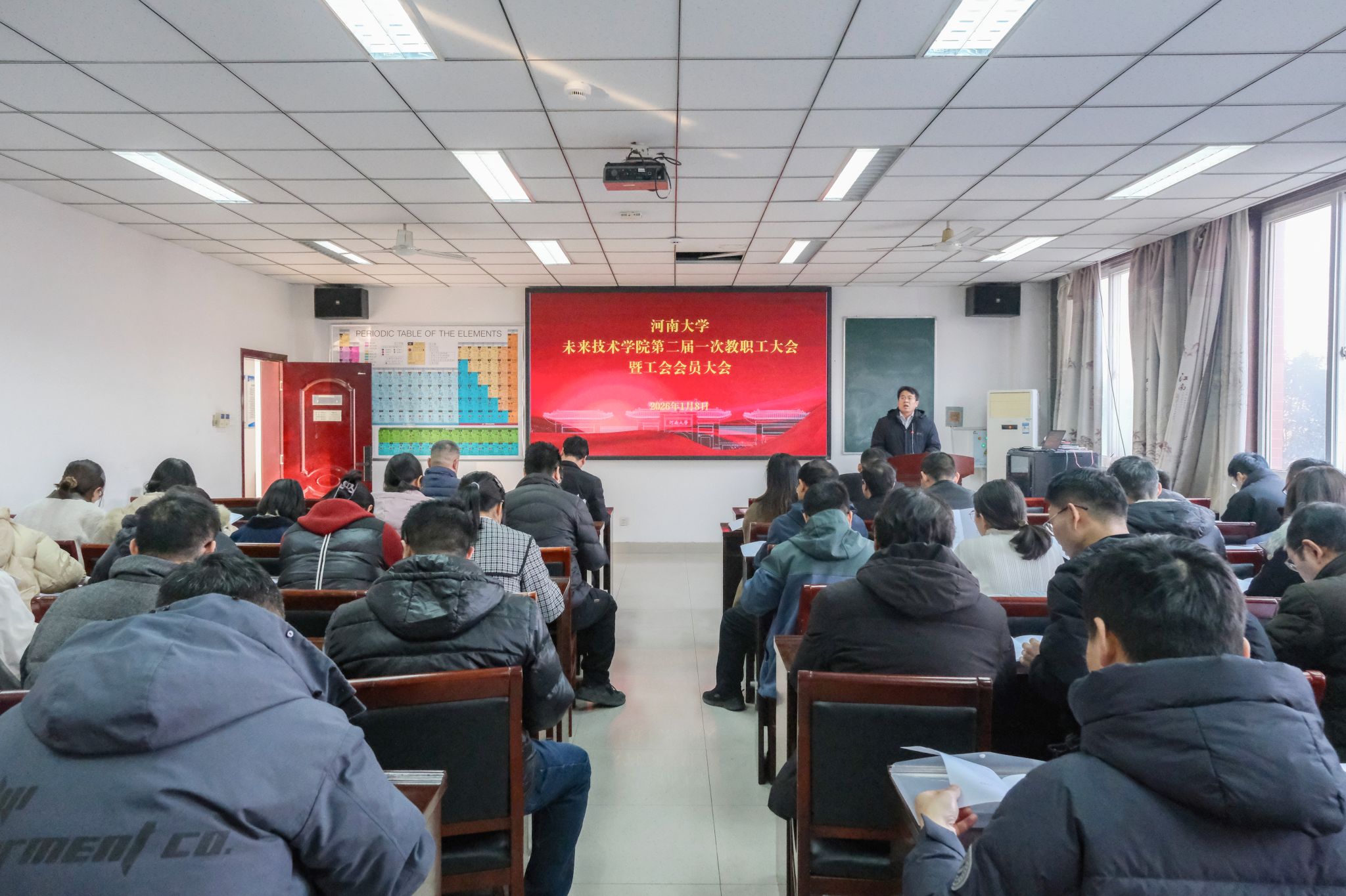 1月8日,未来技术学院(量子信息)第二届一次教职工大会暨工会会员大会在学院B304会议室举行。校工会副主席徐飞到会指导,学院全体教职工参会。预备会议审议通过了《大会主席团名单》和《大会主要议程》。