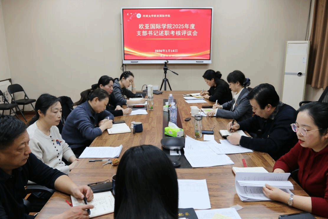 1月14日,欧亚国际学院在学院二楼205会议室召开2025年度党支部书记述职评议会。学院党委委员、正处级组织员以及各党支部书记参加会议,会议由学院党委书记刘佳明主持。