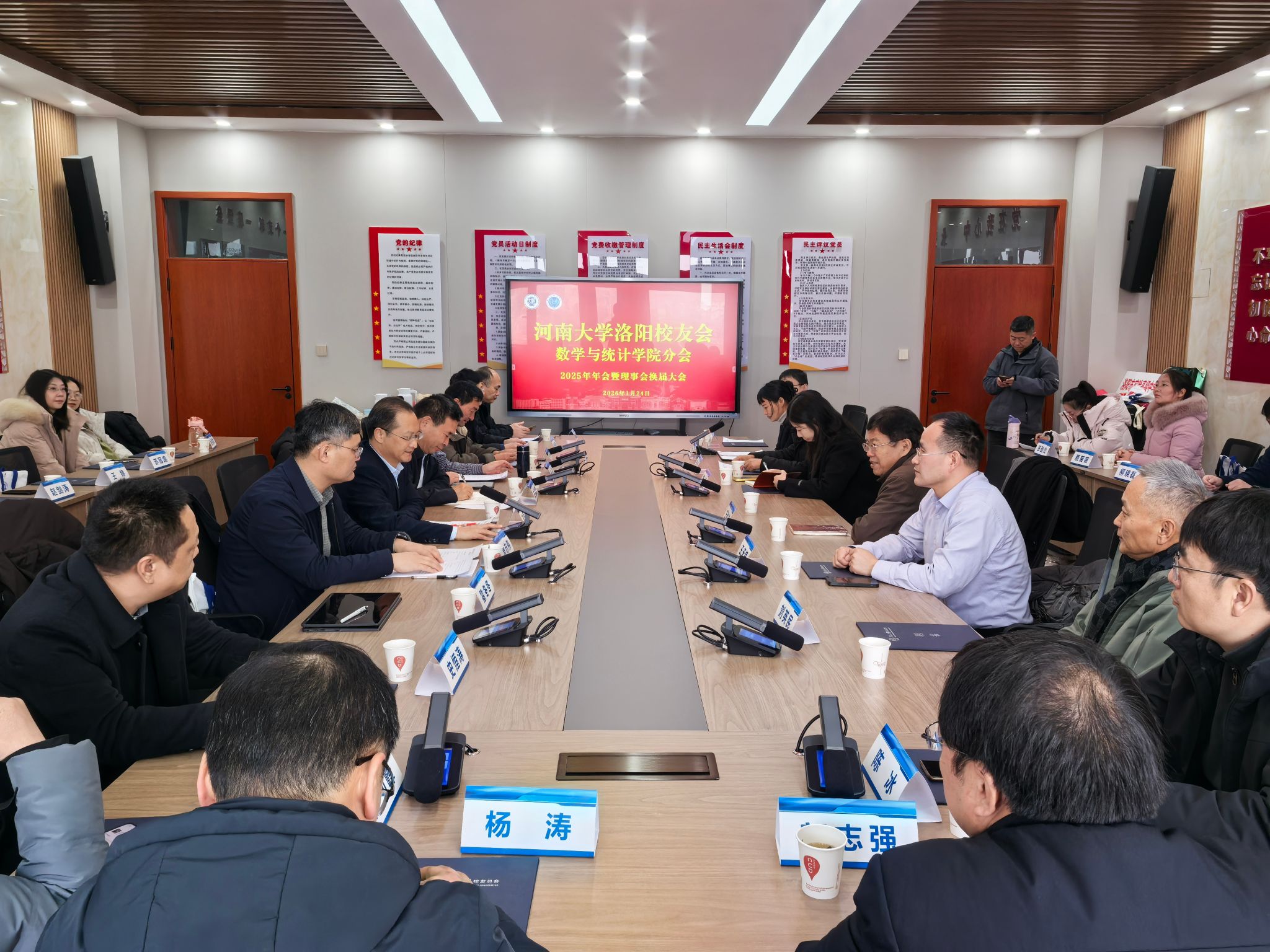1月24日,河南大学洛阳校友会数学与统计学院分会2025年年会暨理事会换届大会在洛阳市实验高级中学举行。校党委巡察工作办公室正处级巡察专员、学院原党委书记史富强,学院党委书记曹志伟、副院长杨一平参加活动,与30余位在洛校友代表欢聚一堂,共叙同窗情谊。活动由河南大学洛阳校友会数学与统计学院分会副秘书长王源源主持。