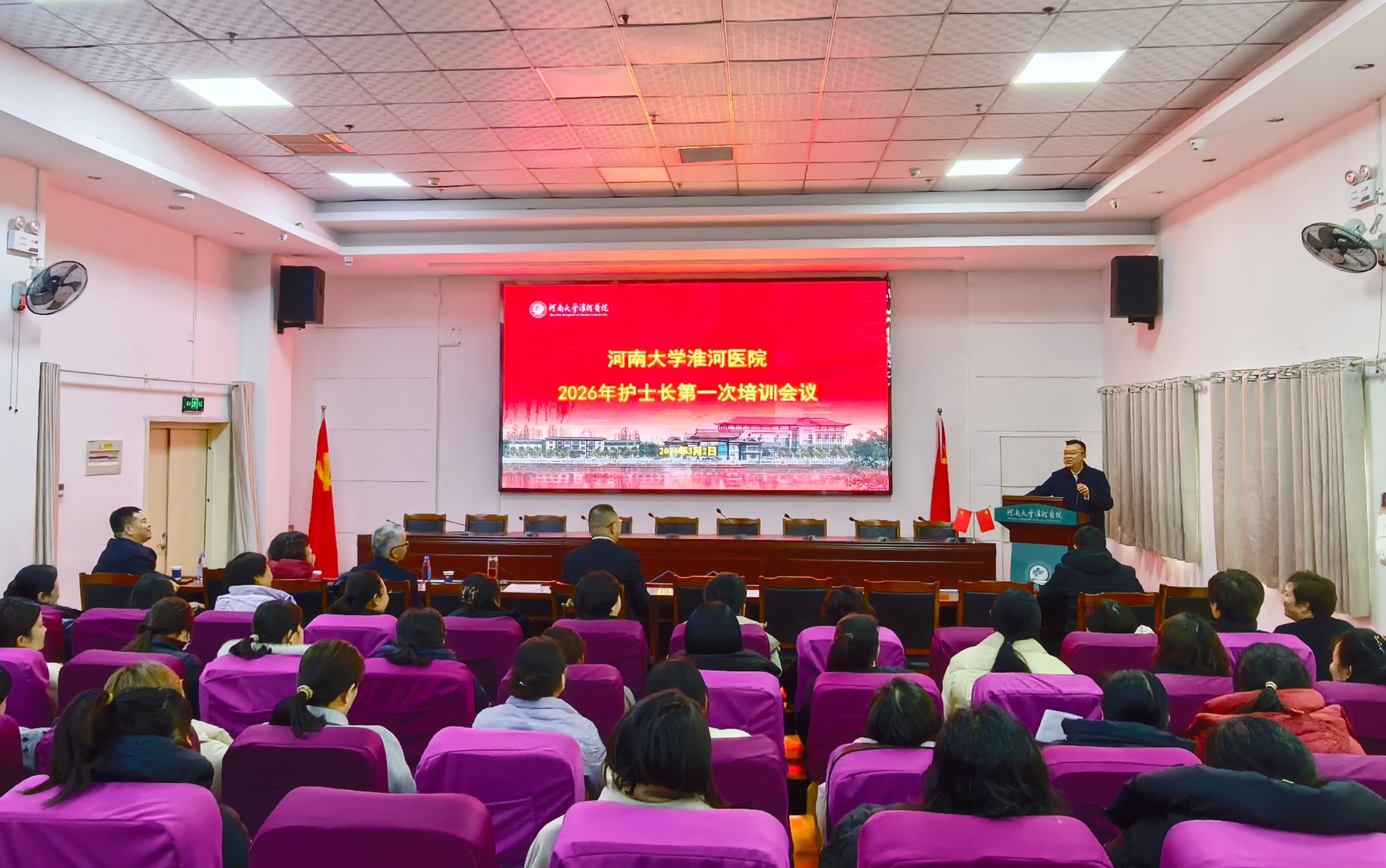 3月2日,淮河医院召开2026年护士长第一次培训会议,在院领导班子、护理部成员及全体护士长参会,会议由副院长刘洋主持。