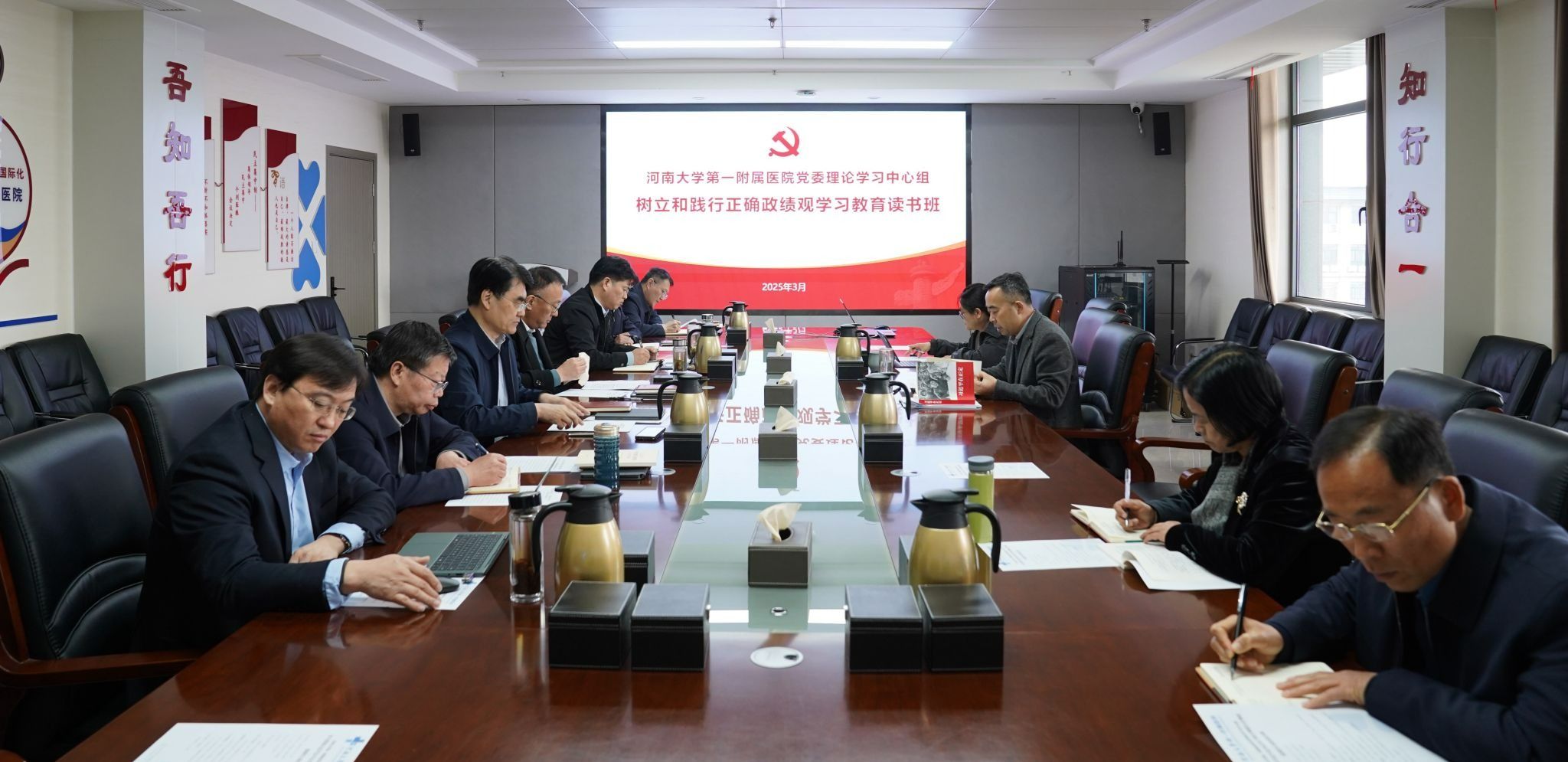 3月19日至20日,第一附属医院利用两天时间,采取书记领学、集中自学和交流研讨相结合的方式,在16号楼4楼红旗厅举办树立和践行正确政绩观学习教育读书班。党委书记刘建勇主持会议并致辞,院领导班子成员参加会议。