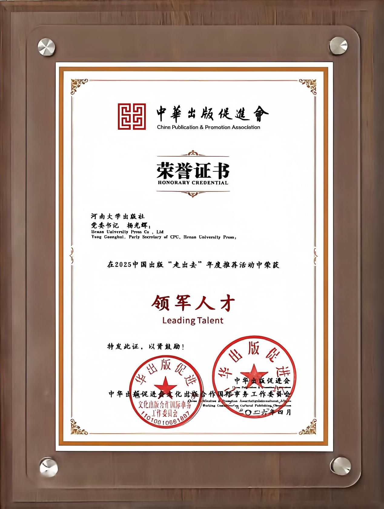 本次大会以“新开局·新蓝图·新发展”为主题,为期3天。来自全国各地的出版集团、出版社、版权协会、高等院校及民营书业的220余位代表参会,共商国际出版合作大计。大会开幕式由中国新闻出版研究院原副院长,中华出版促进会国际工委学术委员会主任委员范军主持。原国家新闻出版总署署长、中华出版促进会名誉理事长柳斌杰出席大会并发表讲话。大会为入选2025中国出版“走出去”年度评选推荐名单的个人、单位及项目代表颁发证书。河南大学出版社党委书记杨光辉荣获2025年度“中国出版‘走出去’领军人才”。