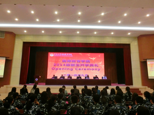 9月19日上午,国际教育学院隆重举行2014级新生开学典礼。学院党政领导,中方教师代表和外方教师代表等出席典礼。根据2014级新生的分布情况,开学典礼分别在新老两个校区进行。开学典礼由学院党委副书记李从国主持。
