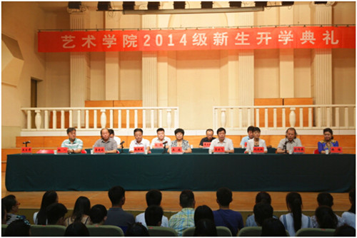 2014年9月4日上午,河南大学艺术学院2014级新生开学典礼在新艺术楼音乐厅举行。校党委副书记、艺术学院党委书记王凌、常务副书记吕云飞、院长赵振乾等班子成员和各分院院长参加了典礼。典礼由艺术学院副院长彭西春主持。