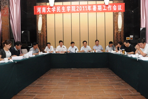 2011年7月25日至 27日,民生学院召开2011年暑期工作会议。学院党政领导及各部门负责人参加了会议。会议通过分组讨论、主题交流等多种形式对《河南大学民生学院“十二五”事业发展规划》(草案)及《河南大学民生学院2011年财务收支预算》(草案)进行深入讨论和研究。