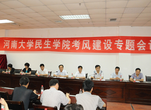 2011年6月20日下午,民生学院在图书馆一楼会议室召开了考风建设专题会议。民生学院领导、全体教职工及来自全院各专业的学生干部代表与会。会议由民生学院党委书记王国庆主持。