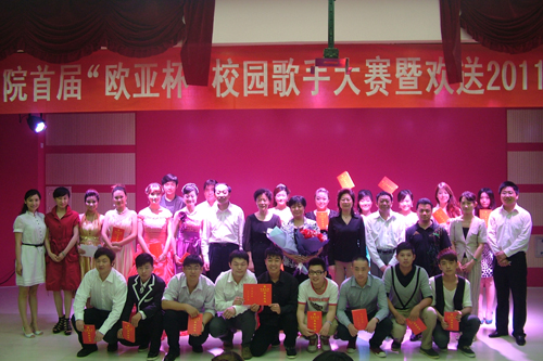 用歌声点燃梦想,用真情传递祝福。2011年 5月19日晚,由河南大学欧亚国际学院举办的首届“欧亚杯”校园歌手大赛暨欢送2011届毕业生文艺晚会在明伦校区科技馆一楼举行。校党委副书记王凌,党委宣传部、学生工作处、校团委、欧亚国际学院相关负责人,及欧亚国际学院部分师生参加了晚会。