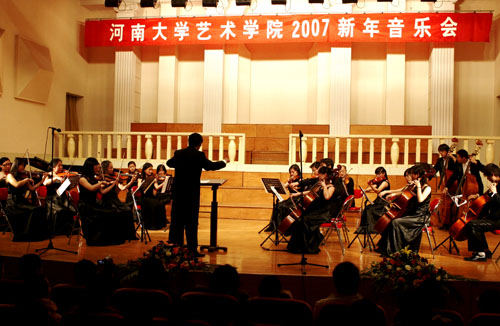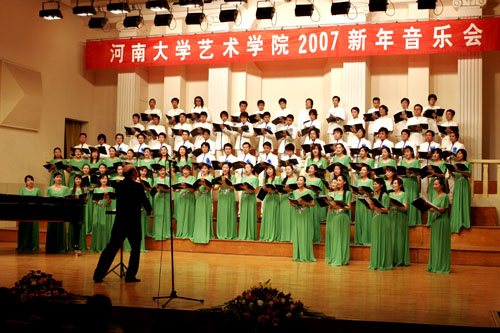 12月25日晚,我校艺术学院音乐厅内洋溢着温馨浓郁的艺术氛围和辞旧迎新的喜庆气息,艺术学院2007新年音乐会在此隆重上演。校领导关爱和、黄亚彬、梁晓夏、关学增、王发曾、郭天榜等出席晚会并兴致勃勃地观看了演出。