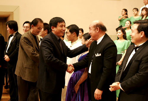 由著名作曲家石夫和我校艺术学院副院长陈家海共同创作的民族交响合唱乐《木兰辞》成为当晚演出的压轴曲目。在陈家海教授的激情指挥下,载誉归来的河南大学研究生合唱团以精湛的演唱技巧完美演绎了该曲,把音乐会推向了高潮。晚会结束后,校领导走上舞台祝贺演出成功,并亲切慰问了参演师生。