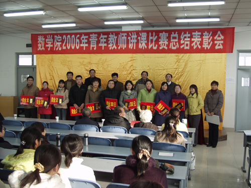 据悉“数学与信息科学学院2006年青年教师讲课比赛”于11月15-17日举行。该院在校的28位35岁以下青年教师全部参加了比赛,青年教师冯淑霞、杨晓艺荣获一等奖,另外还有4名教师获得二等奖,6名教师获得三等奖。
