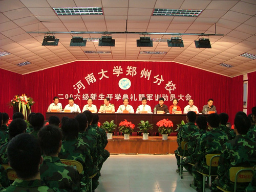 9月19日下午,郑州分校在新落成的礼堂内隆重举行了郑州分校2006级新生开学典礼暨军训动员大会。校党委副书记黄亚彬,副校长梁晓夏带领教务处、学生处、校团委和计算机学院的有关负责同志出席了开学典礼,郑州分校的全体领导和承训单位人民武装学院的院长郭晓明大校等与会。大会由郑州分校校长牛利民同志主持。