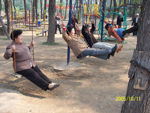 在游乐场,老人们在工作人员的照顾下,滑滑梯、跷跷板、荡秋千、坐转椅……虽然动作有些缓慢,但兴趣昂然,虽然有些害羞,但仍然争先恐后地参加那些平时只有孩子们才玩的游戏,他们游戏时的忘我和投入,仿佛又回到了童年,他们笑声朗朗,笑容灿烂,充分反映了老人们和谐幸福的晚年生活和热爱大自然的高尚情怀。在休息的间隙,老同志们还在丁平坤老师的指挥下,放声高歌,一曲《团结就是力量》表达了他们的壮志和心声。中午,在万岁食府,大家共同举杯为四位寿星祝贺七十岁生日。