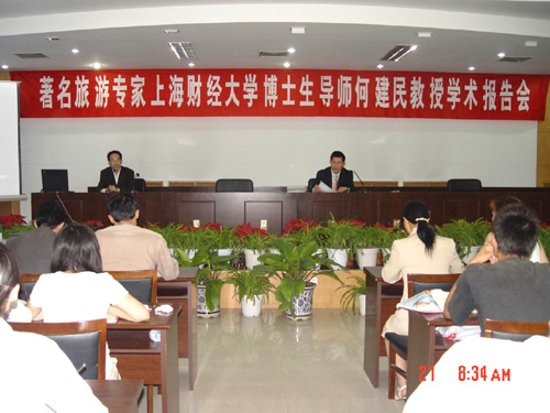 5月21日,新行政楼第四会议室内掌声如潮,上海财经大学博士生导师、欧美同学会旅游专业委员会专家何建民教授在此以《现代国际旅游营销管理的新趋势》为题为在场师生作了一场学术讲座。