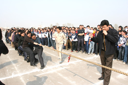 师生拔河联谊赛无疑是本次活动中最精彩的部分。教工队与学生队各派25名选手参加,郑邦山同志应邀担任裁判。经过三局激烈的较量和角逐,教工代表队最终取得了胜利。本次比赛所设置的六人迎面接力赛、两人三足跑、袋鼠跳、“猪八戒摸媳妇”等项目也都紧张激烈、悬念迭出、妙趣横生,吸引了众多师生积极参与。环境与规划学院的本次趣味运动会对全院教职工生的全民健身、师生联谊、竞争意识和精神状态都是一个极大的促进。