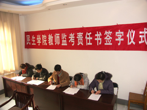 2005年元月17日上午,民生学院为认真贯彻落实学校有关考试规定,严肃考风考纪,特举行监考教师培训会暨教师监考责任书签字仪式。