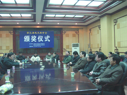 2005年1月14日晚,第三届道风奖学金颁奖仪式在河南大学新办公楼二楼会议室举行。副校长卢克平与宣传部、科研处、研究生处及文学院的有关领导以及文学院师生约30余人与会。会议由文学院赵宁副教授主持。