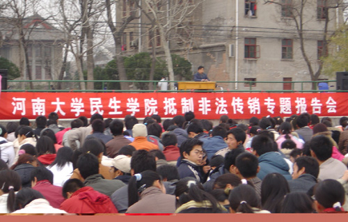 2004年12月9日下午,“河南大学民生学院抵制非法传销专题报告会”在学校东操场隆重举行。