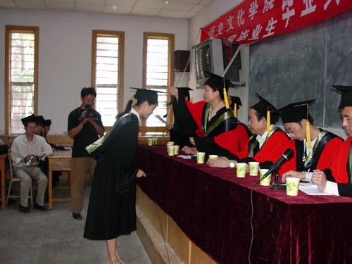2004年6月9日下午,文物馆内一派喜庆的气氛,历史文化学院2004届毕业生毕业典礼暨学位授予仪式在这里隆重举行。历史文化学院院长张倩红、副院长苗书梅等老师以及历史文化学院2004届全体毕业生参加了仪式。仪式由副院长程遂营主持。