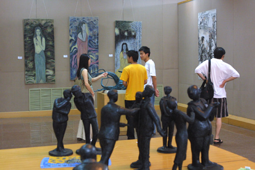 艺术学院美术系“2000级中国画、雕塑、摄影专业毕业生作品汇报展”于2004年6月8日在艺术楼开展。此次展览代表了该年级毕业生的整体水平,从中可以看出:他们既有扎实的基本功,又有适应时代特征的创新技巧和新思维。美术系在四年的本科艺术教育中,一手抓传统继承,抓基本功训练,一手抓素质教育,抓创新意识,融汇古今中外教育原则。把准新时代的脉搏,使他们适应进入社会后的多层次需求,虽然由于找工作和考研占去了许多创作的时间,但在基本功和创造力的体验上仍能看出他们就象早晨八九点钟的太阳,未来是属于他们的。
