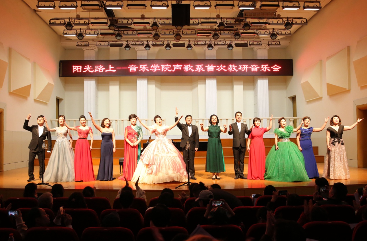 本次音乐会是音乐学院成立后举办的首次教研音乐会。它既是对MichelaSburlati教授来我校学术交流的成果汇报,同时也是音乐学院积极探索教研改革的一次全新尝试。音乐会上,老师们既演唱了《故乡是北京》《玛依拉变奏曲》《兰花花》等家喻户晓的中文歌曲,又展现了《我愿生活在美梦里》《我的家在那高山上》《诽谤》等西方经典歌剧片段,最后,由参演教师共同合唱的《阳光路上》把音乐会推向了高潮。整场音乐会充分体现了我校声乐教育专业的引领地位,体现了声乐教师团队的团结精神与合作意识,是“洋为中用”、西洋技术民族化的完美诠释。