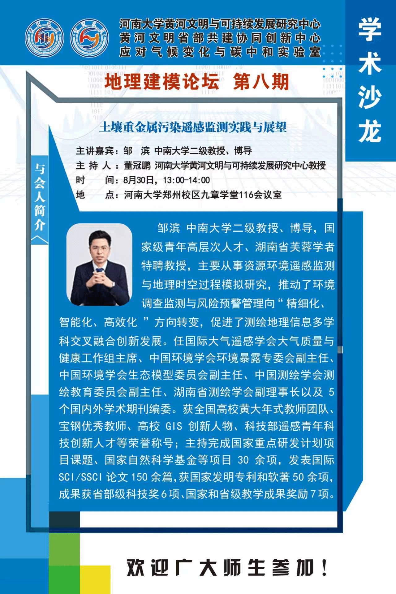 邹滨:土壤重金属污染遥感监测实践与展望(时间:8月30日)