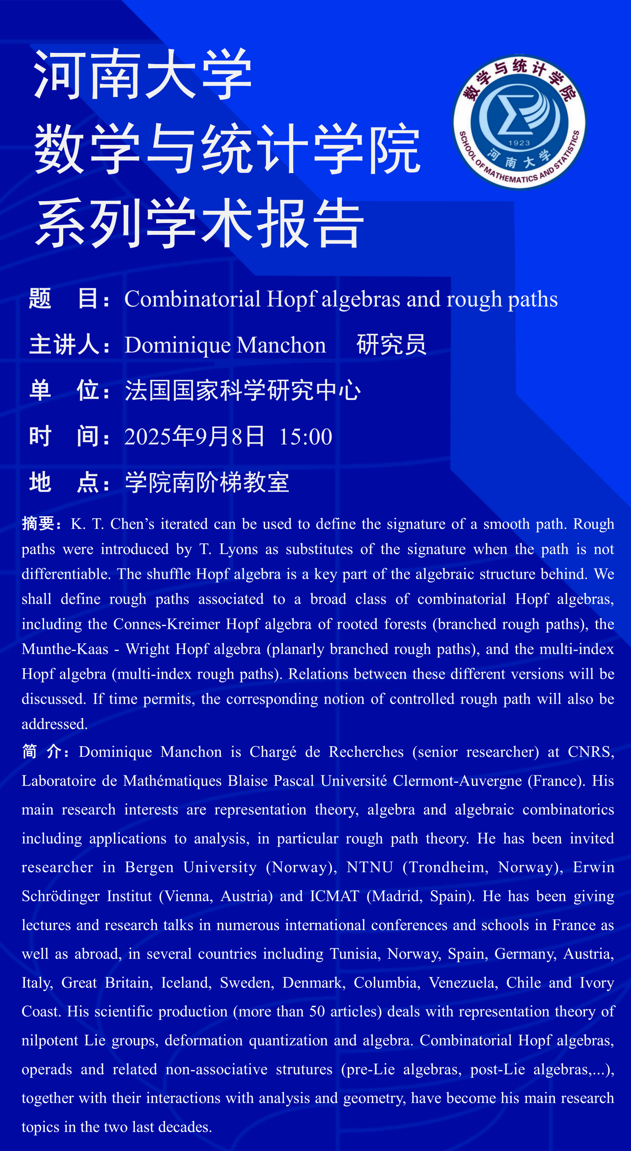 Dominique Manchon: Combinatorial Hopf algebras and rough path( 时间:9月8日)