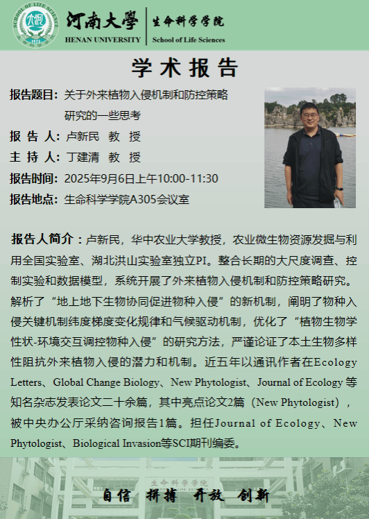 卢新民:关于外来植物入侵机制和防控策略研究的一些思考(时间:9月6日)