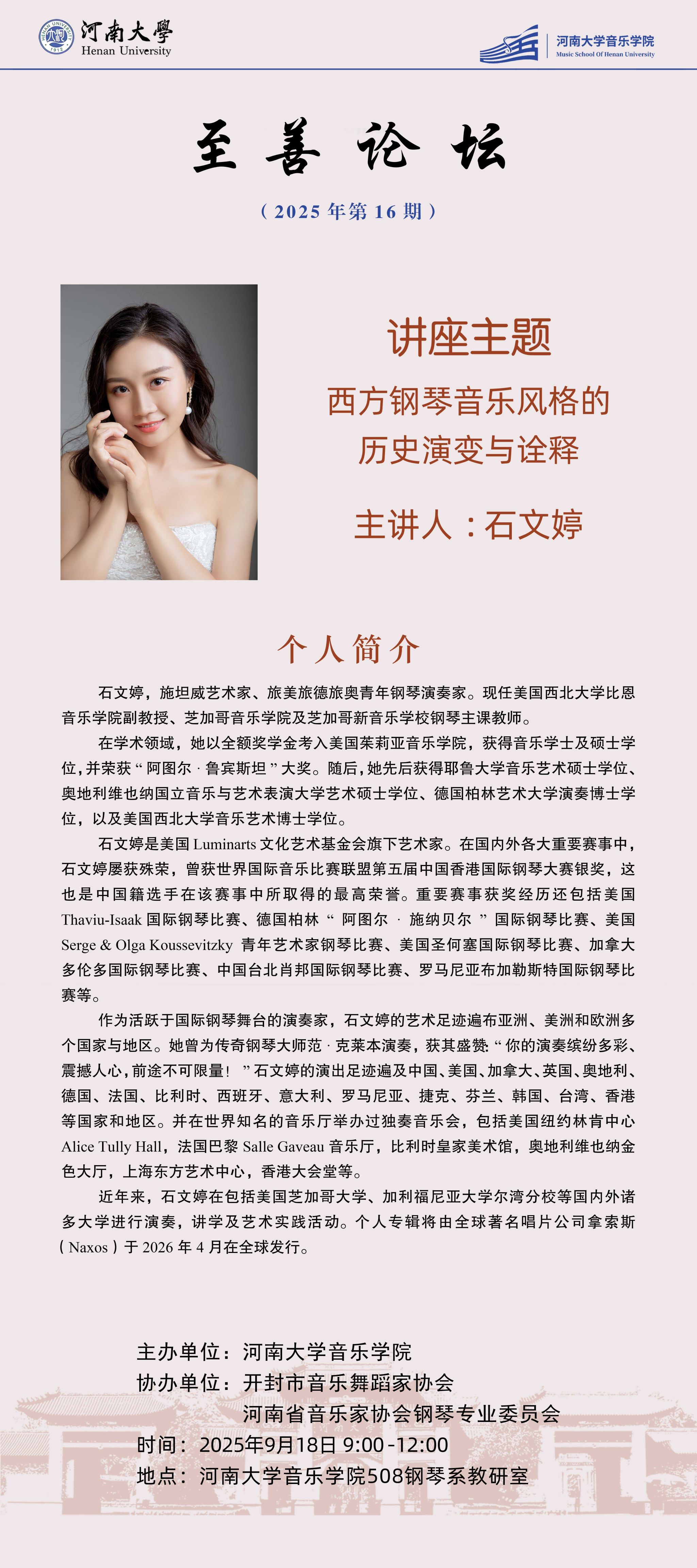 石文婷:西方钢琴音乐风格的历史演变与诠释(时间:9.18)