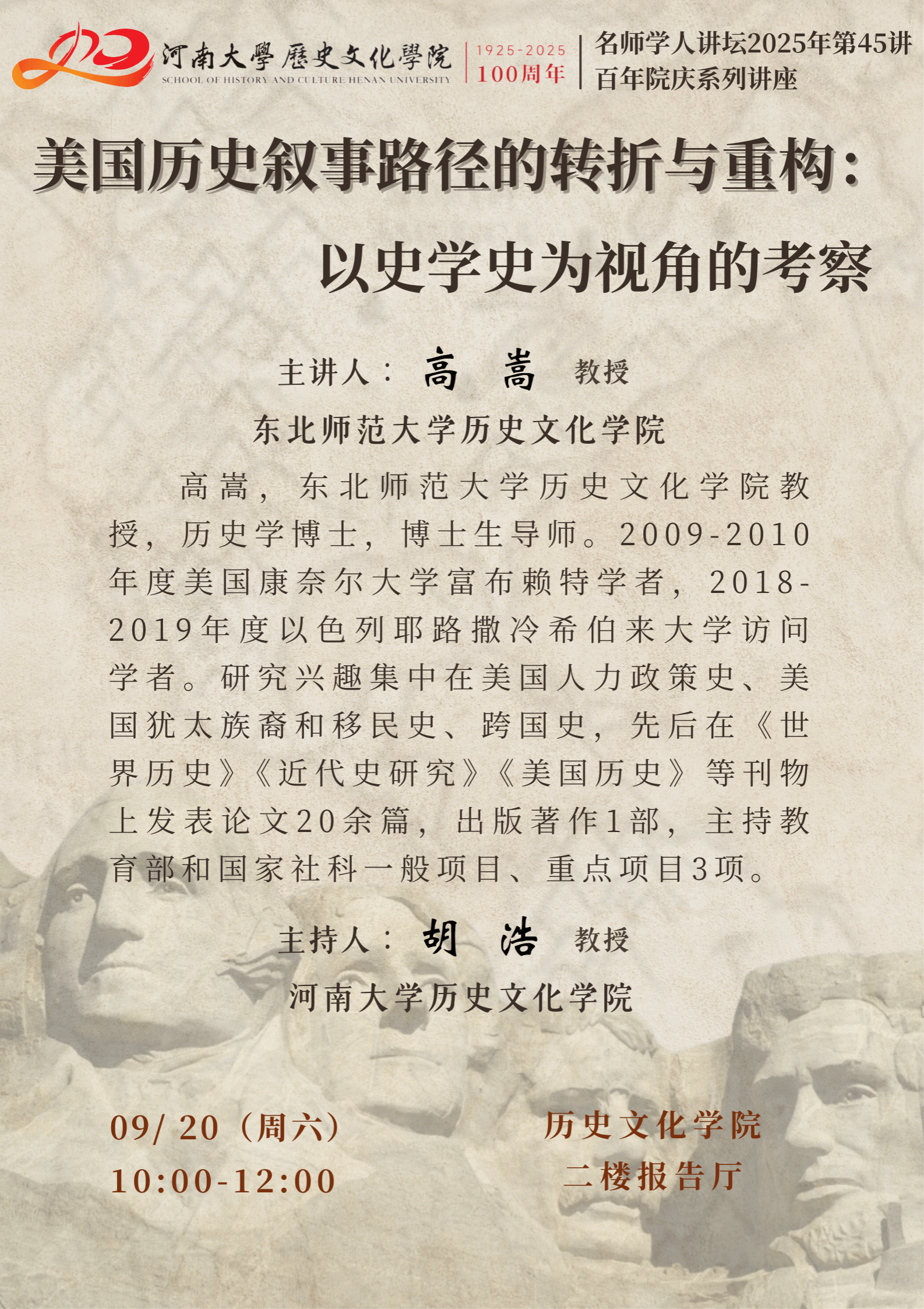 高嵩:美国历史叙事路径的转折与重构:以史学史为视角的考察(时间:9.20)