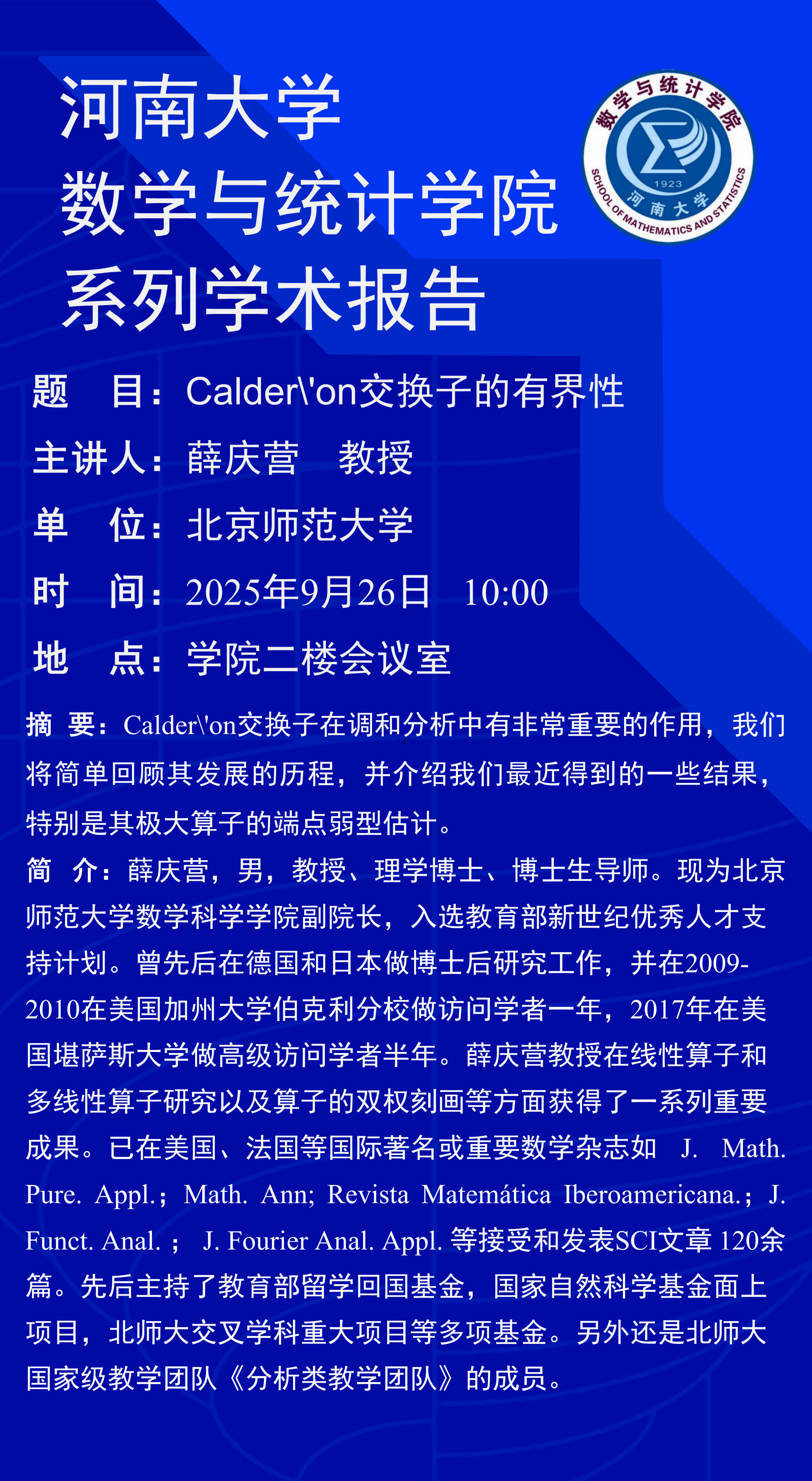 薛庆营:Calder\'on交换子的有界性(时间:9月26日)