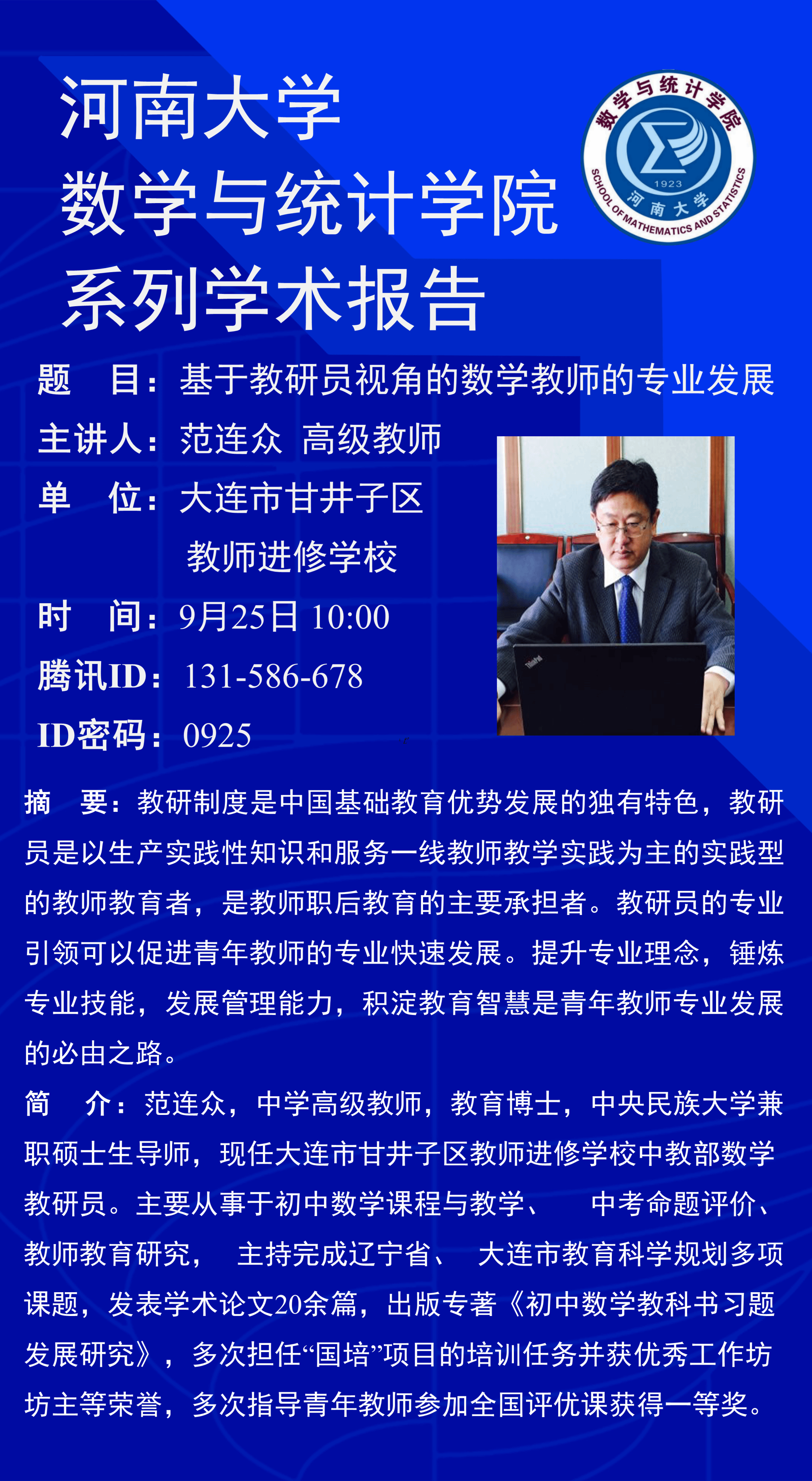 范连众 :基于教研员视角的数学教师的专业发展(时间:9月25日)