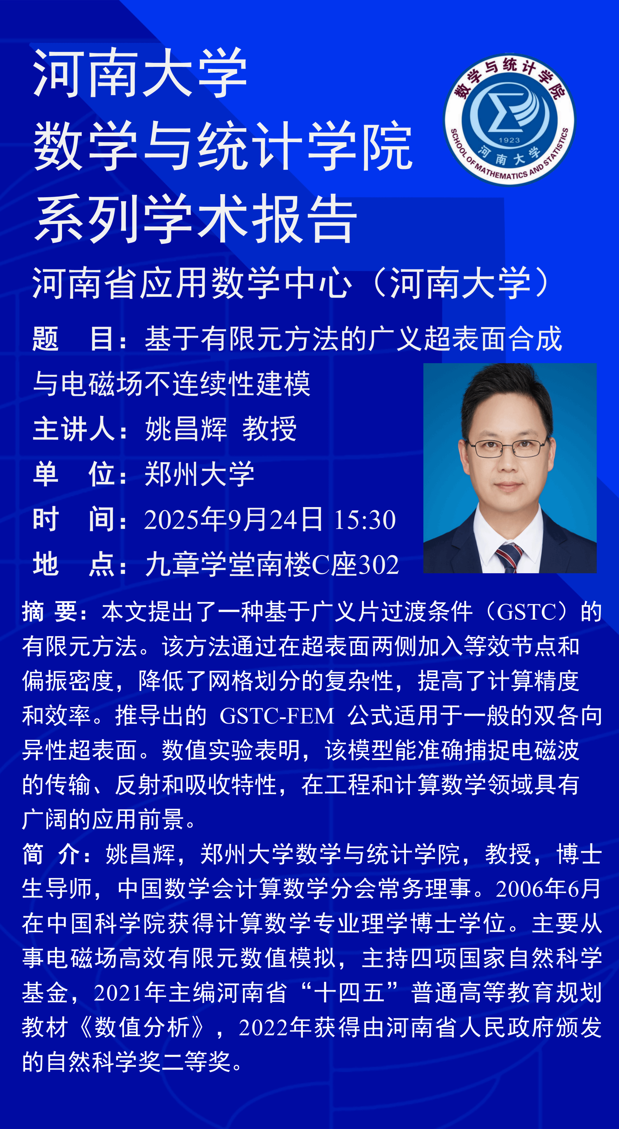 姚昌辉:基于有限元方法的广义超表面合成与电磁场不连续性建模(时间:9月24日)