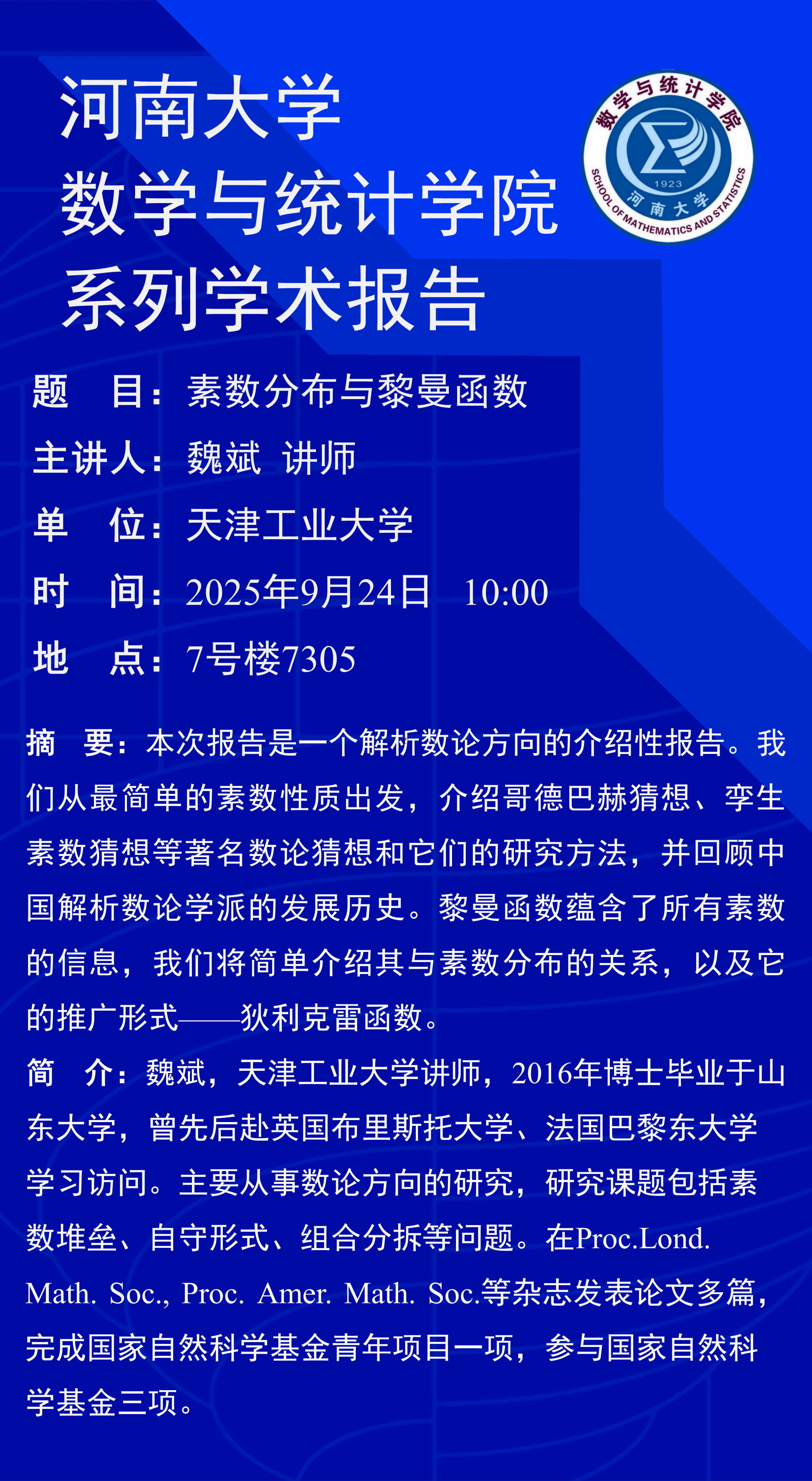 魏斌:素数分布与黎曼函数(时间:9月24日)