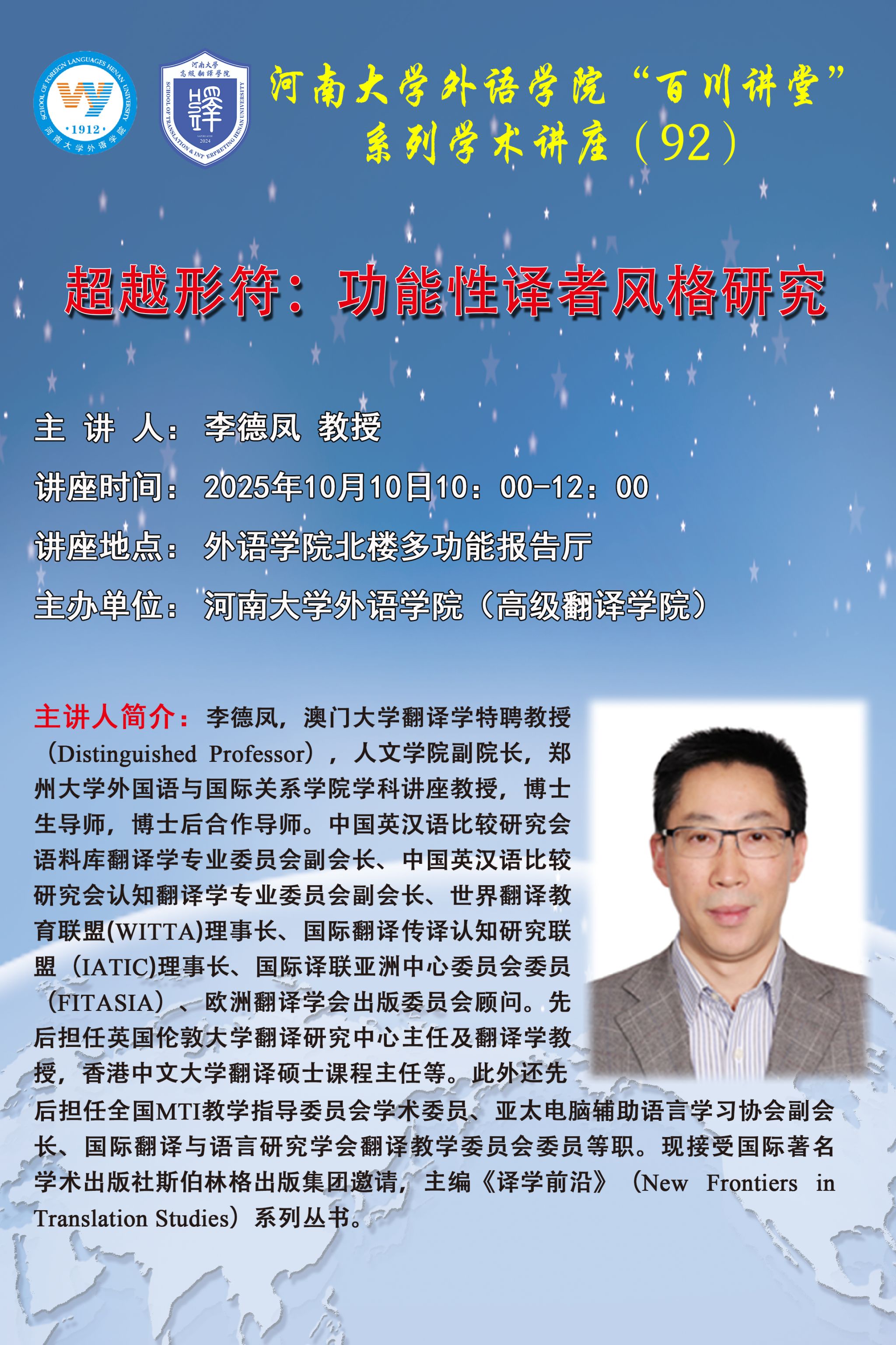 李德凤:超越形符:功能性译者风格研究(时间:10.10)