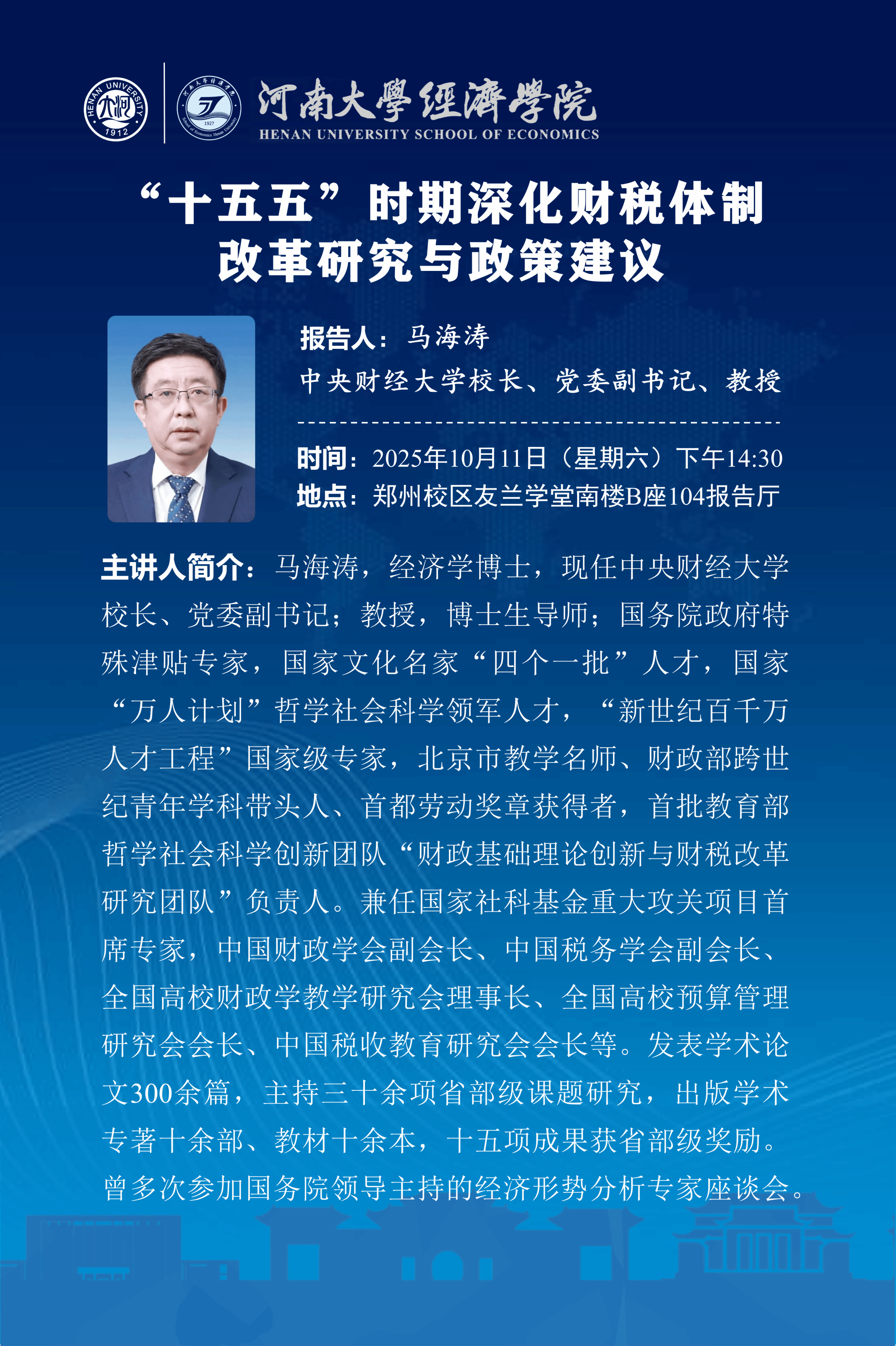 马海涛:“十五五”时期深化财税体制改革研究与政策建议(时间:10.11)