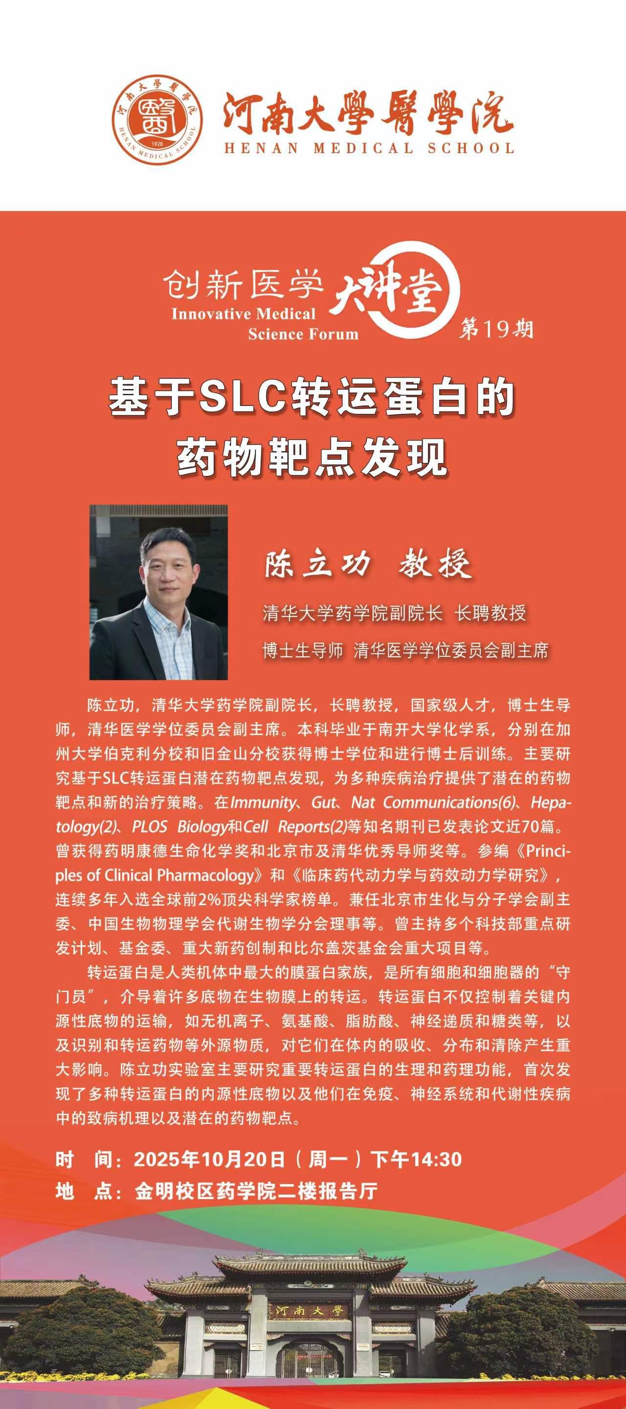 陈立功 :基于SLC转运蛋白的药物靶点发现(时间:10月20日)