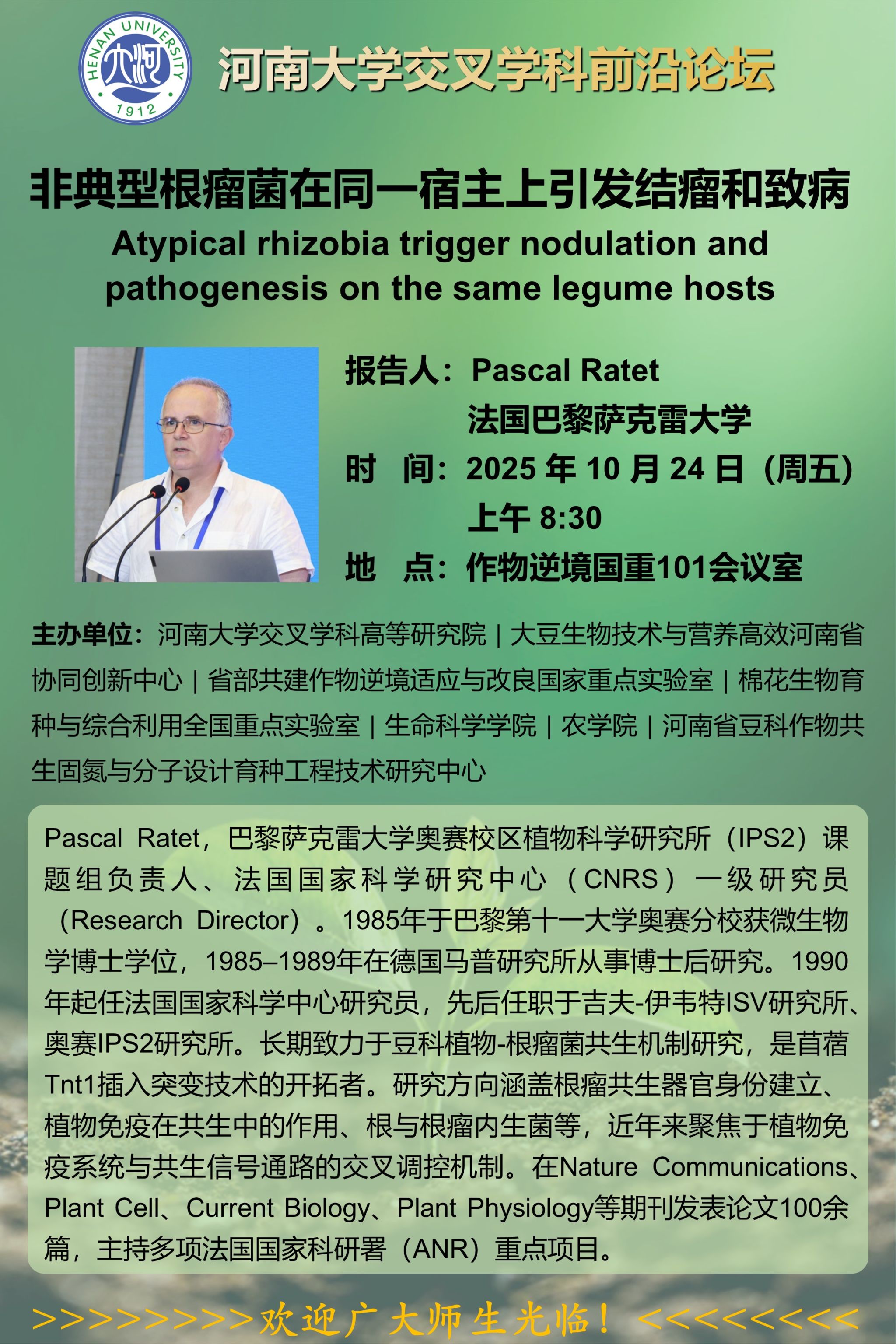 Pascal Ratet:Atypical rhizobia trigger nodulation and pathogenesis on the same legume hosts(时间:10月24日)