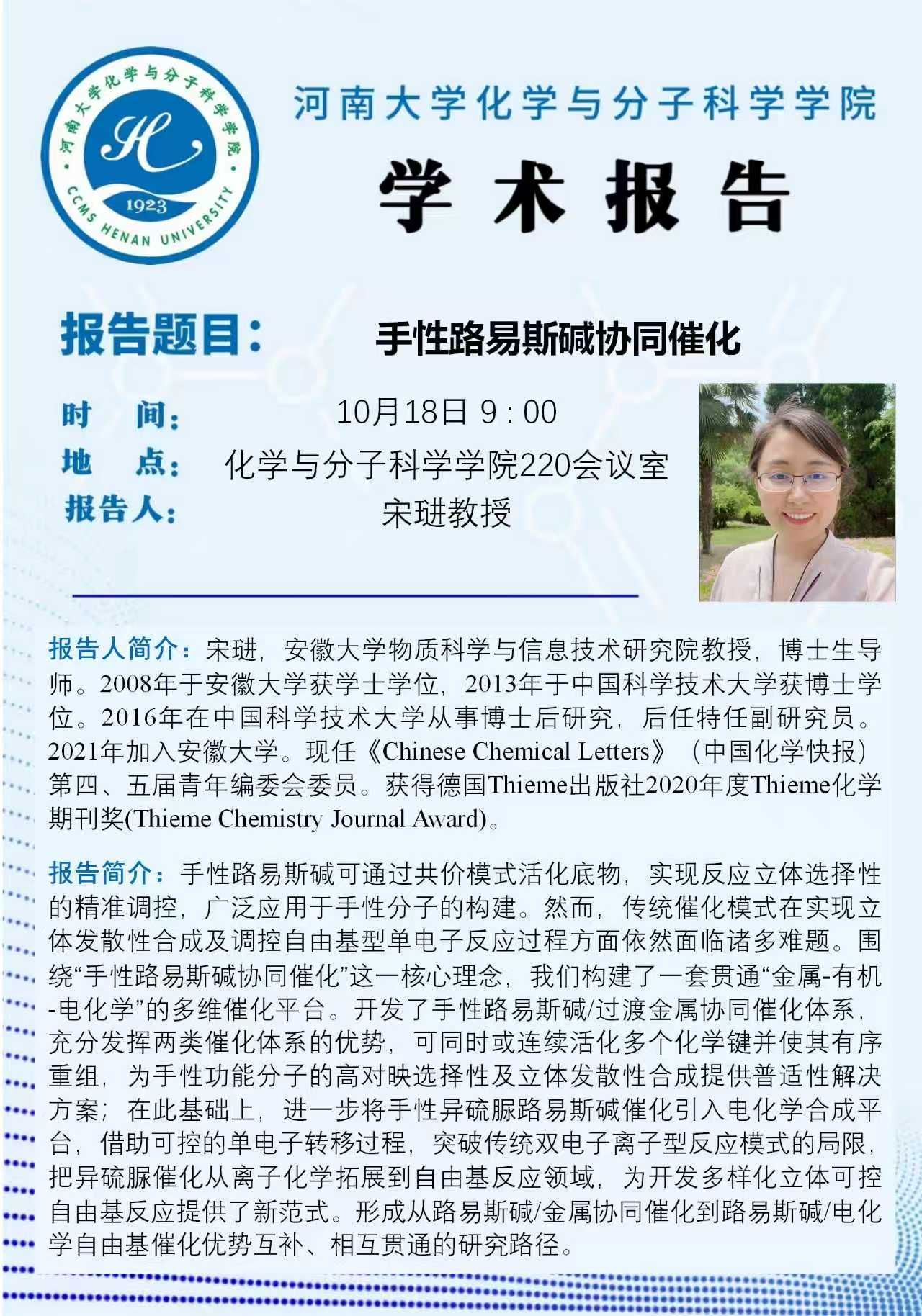 宋琎:手性路易斯碱协同催化(时间:10月18日)