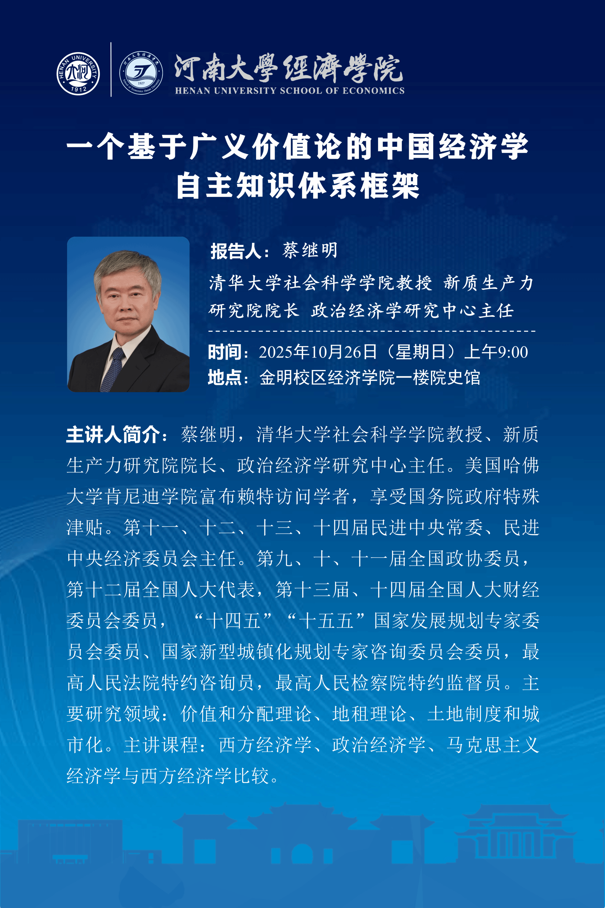 蔡继明:一个基于广义价值论的中国经济学自主知识体系框架(时间:10.26)