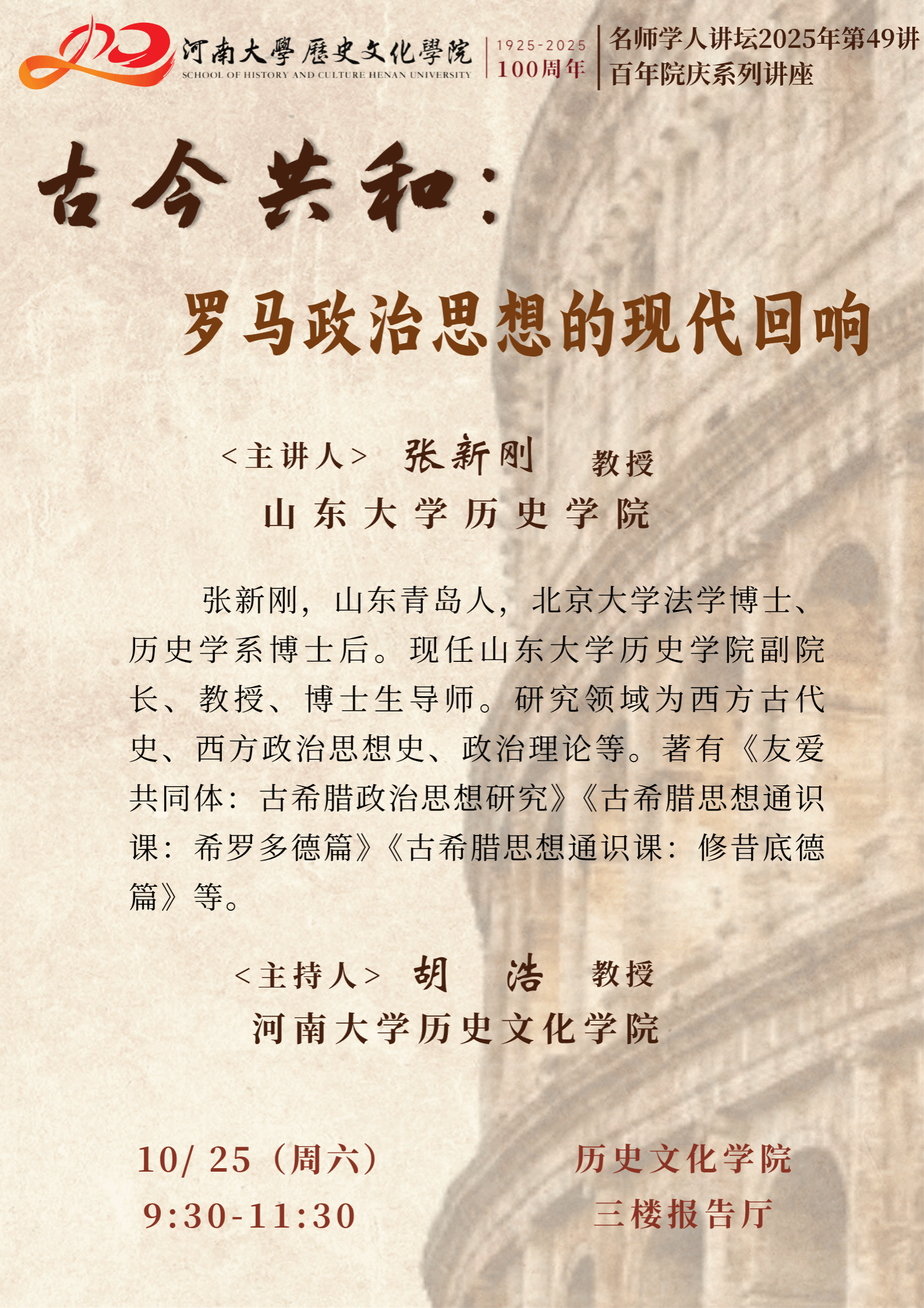 张新刚:古今共和:罗马政治思想的现代回想(时间:10.25)