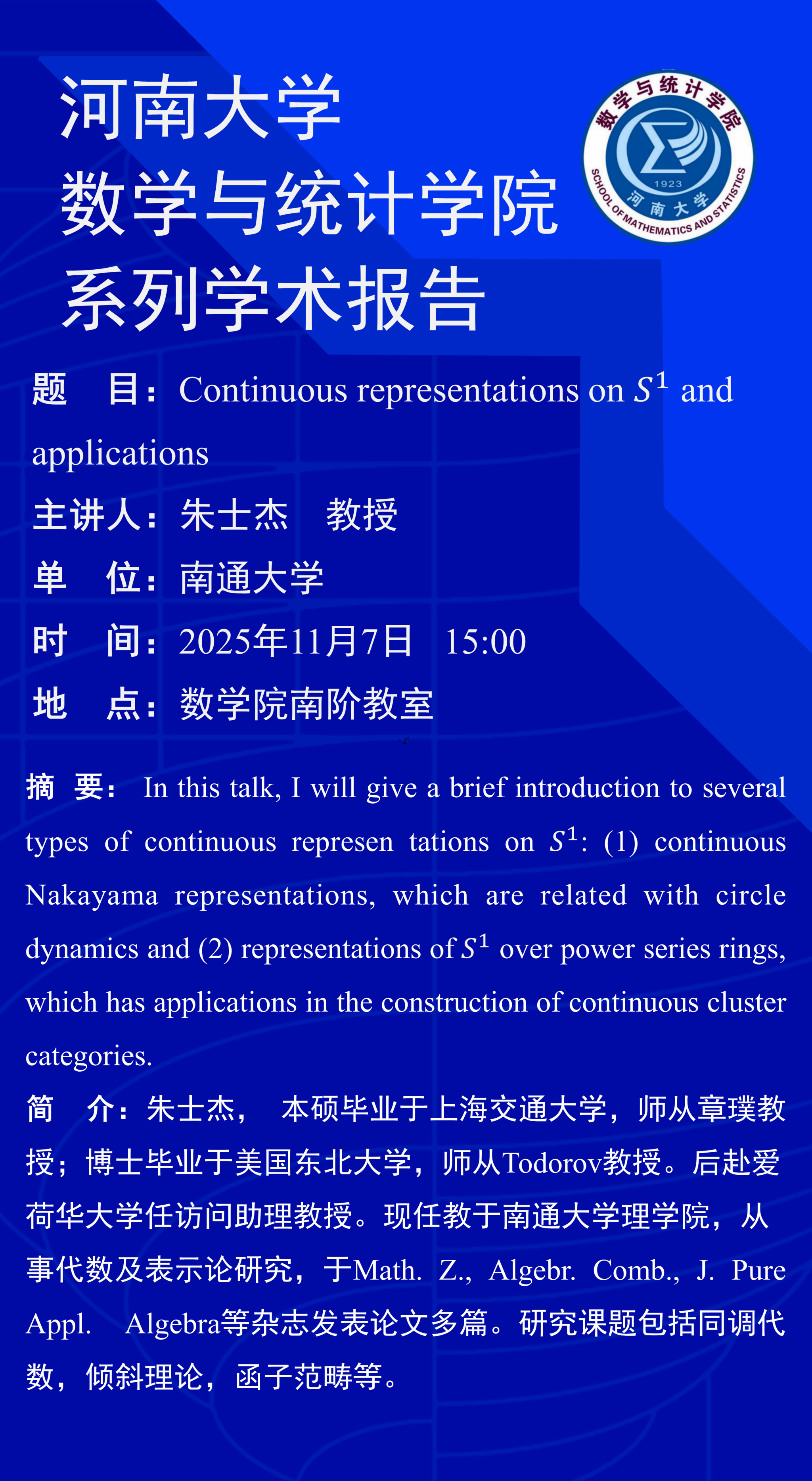 朱士杰:Continuous representations on S^1 and applications (时间:11月7日)