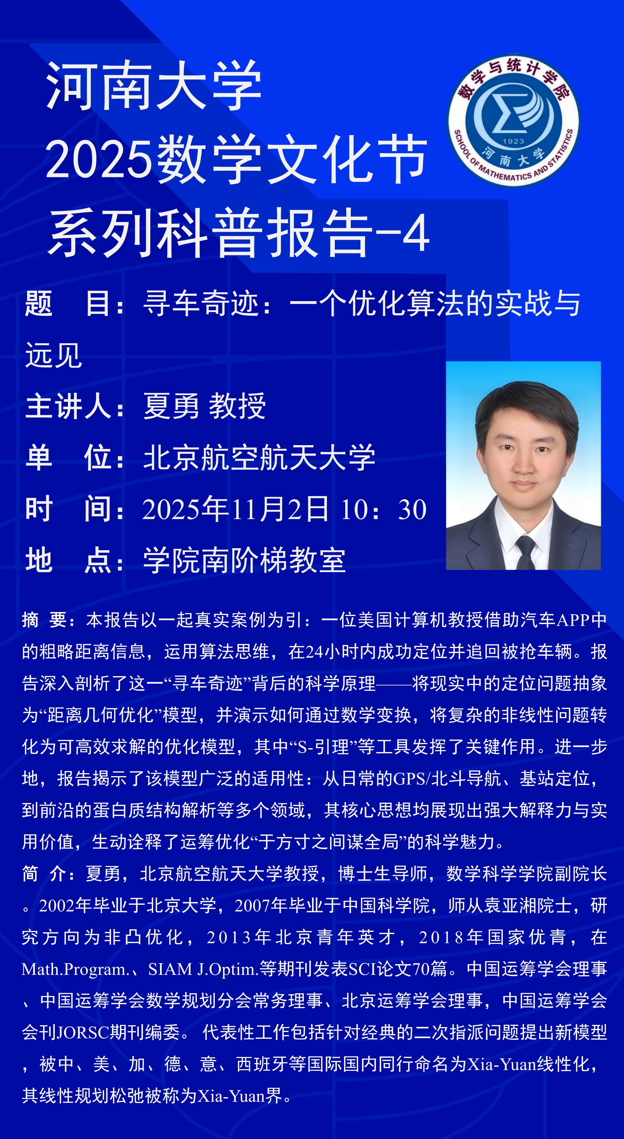 夏勇:寻车奇迹:一个优化算法的实战与远见 (时间:11月2日)