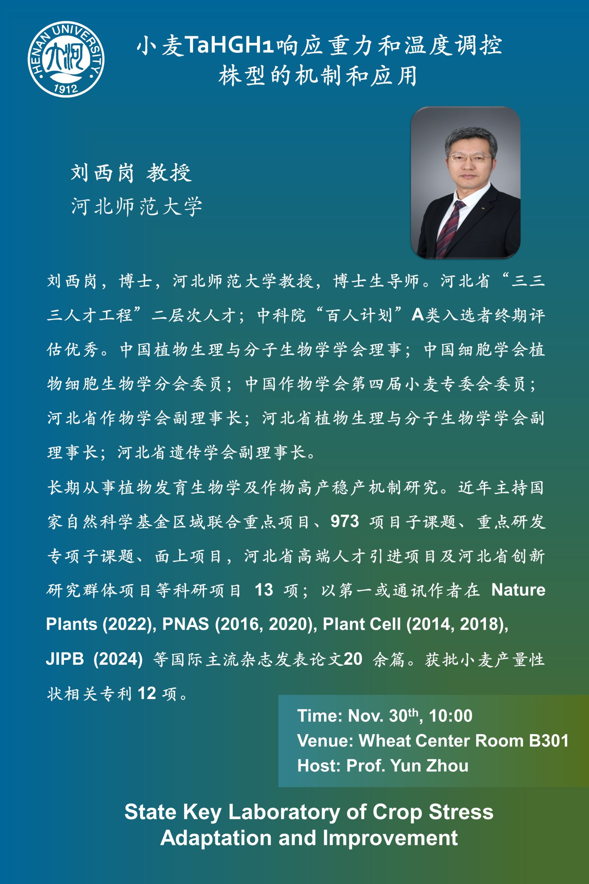 刘西岗:小麦TaHGH1响应重力和温度调控株型的机制和应用(时间:11月30日)